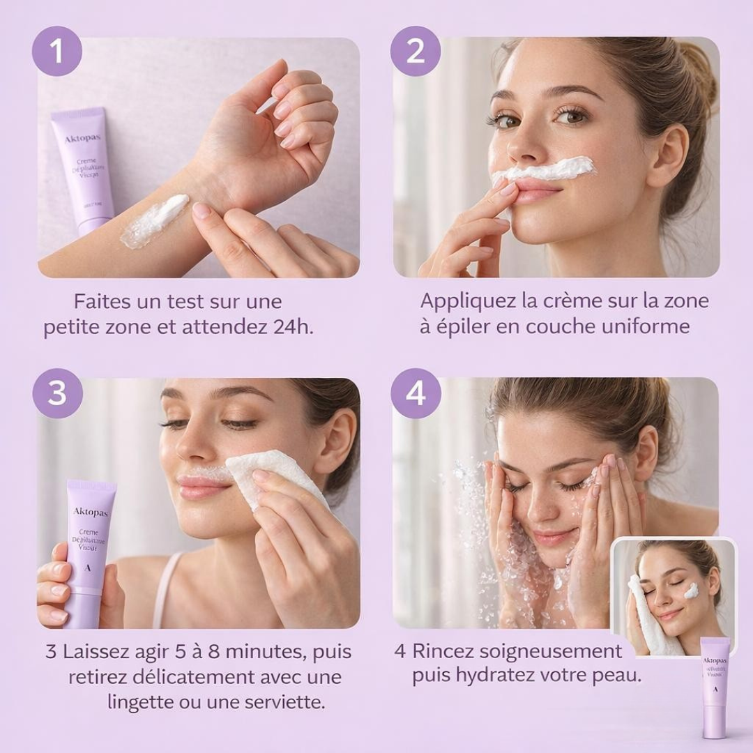 "La crème dépilatoire visage Aktopas a été formulée pour répondre aux besoins spécifiques des peaux sensibles, notamment après l’élimination des poils du visage.