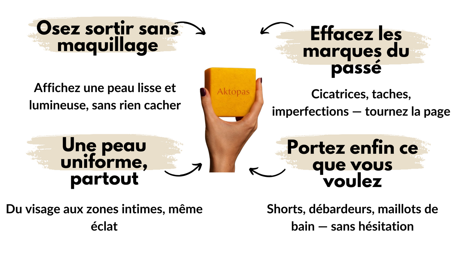 Le savon à l'acide kojique Aktopas est conçu pour cibler l'acné du dos, les cicatrices d'acné, les taches brunes, l'hyperpigmentation, le teint irrégulier et le grain de peau terne.
