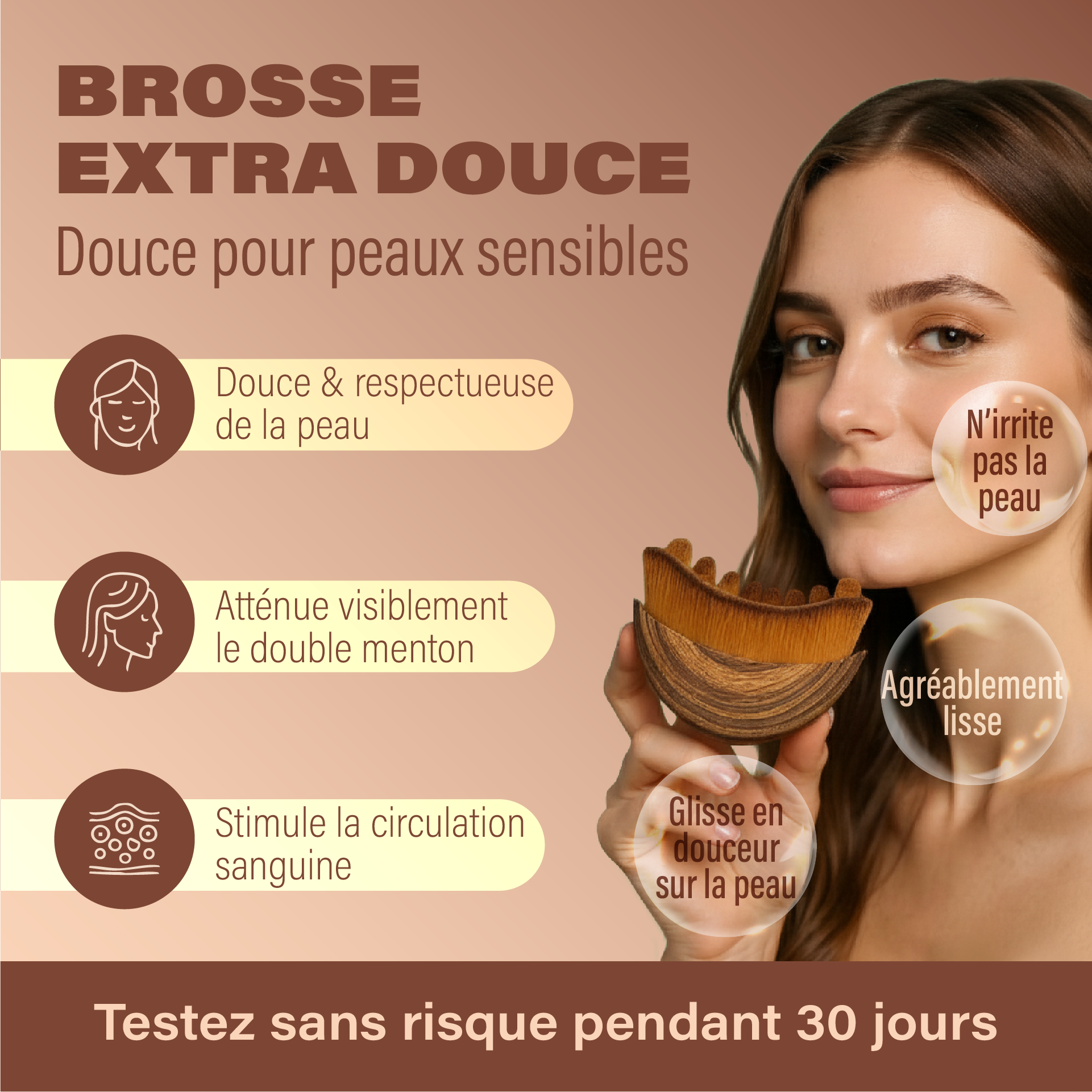 La brosse est conçue pour être utilisée sur peau propre et sèche, sans huile ni sérum, afin de garantir un drainage optimal. Vous pouvez appliquer vos soins habituels après l’utilisation.