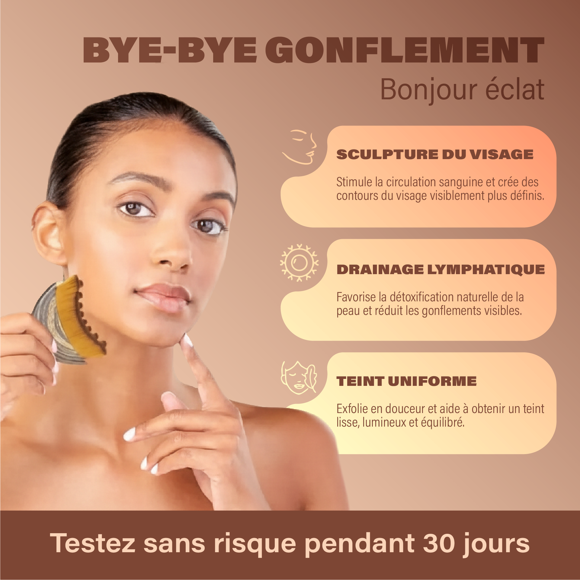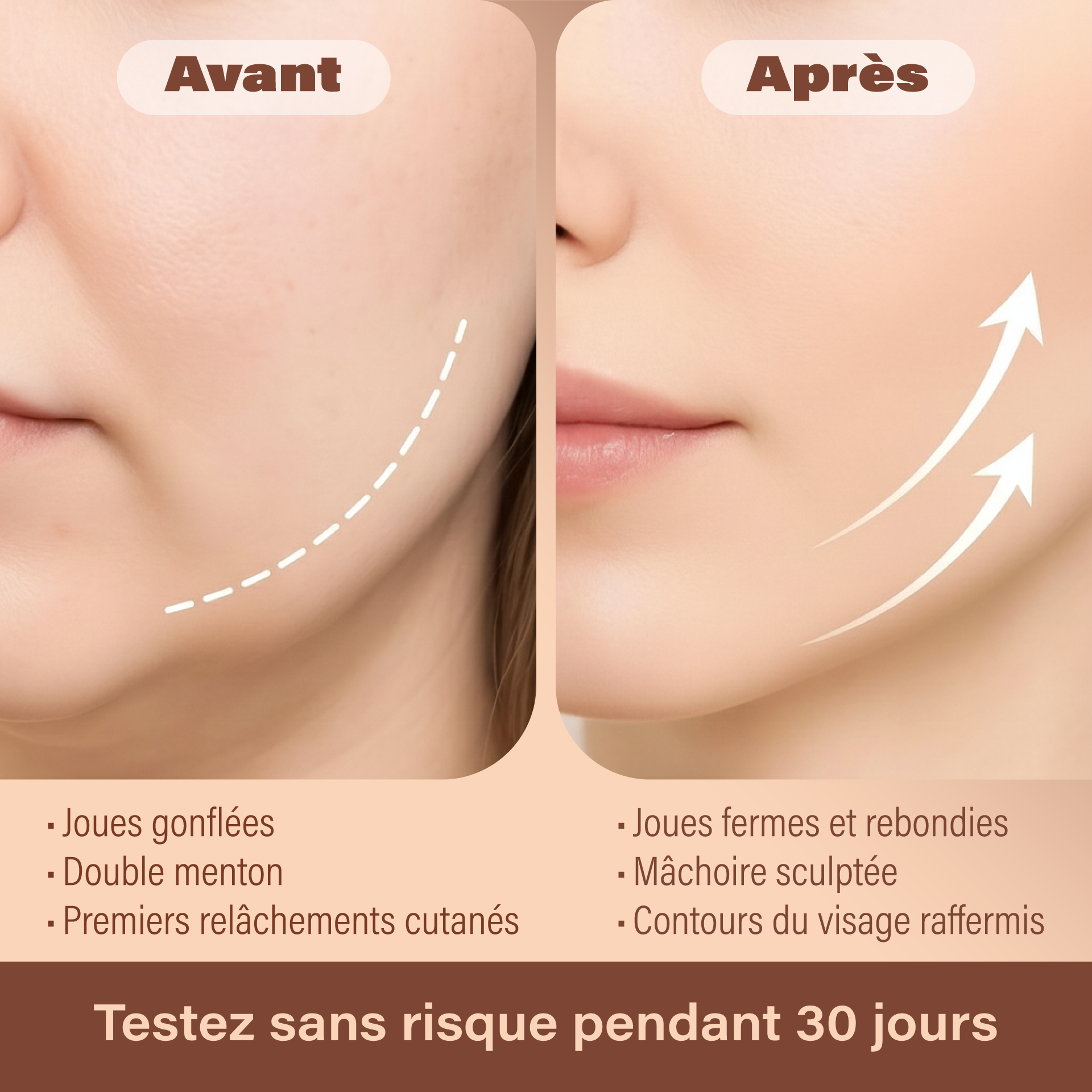Certaines personnes constatent un visage plus frais et moins gonflé dès les premières utilisations. Les résultats les plus visibles apparaissent généralement après 2 à 4 semaines d’utilisation régulière.