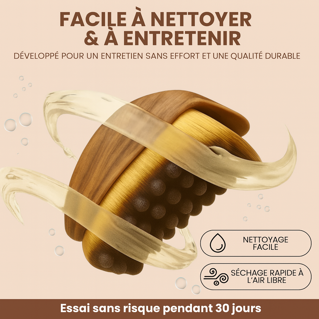 Nettoyez la brosse à l’eau tiède avec un savon doux, puis laissez-la sécher à l’air libre, poils vers le bas. Il est recommandé de la nettoyer régulièrement pour une hygiène optimale.