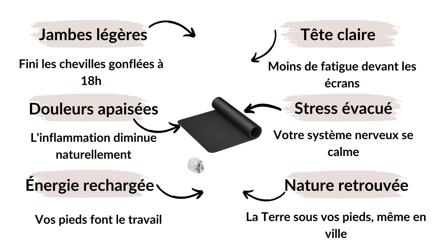 C'est le fait de se reconnecter à l'énergie naturelle de la Terre. Comme marcher pieds nus sur l'herbe ou le sable. Le tapis reproduit cet effet, chez vous.